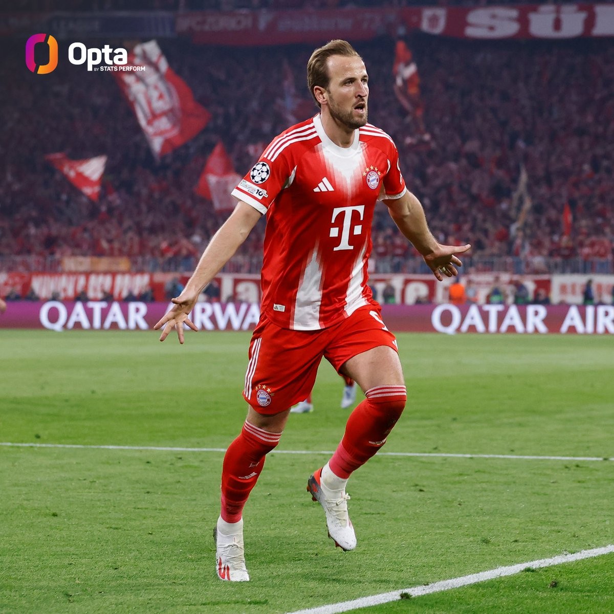 在与皇家马德里的欧冠1/4决赛次回合比赛中打入一球后,凯恩成为本赛季首位在各项俱乐部赛事中打入50球的五大联赛球员。